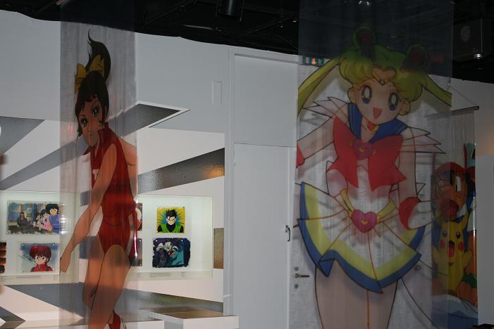 Die Ausstellung ist sehr gut gelungen: Beginnend mit den Kinderserien wie Heidi, Choppy und die Prinzessin und Wickie geht es weiter in die reine Shojo Ecke, wo man Ai Shite Night, Lady Oscar, Wedding Peach und natürlich Sailormoon findet. Hauptsächlich sind Cels, Animations- skizzen und Modelkits ausgestellt, wobei die Cels allerdings stark dominieren.