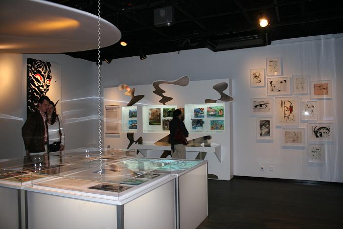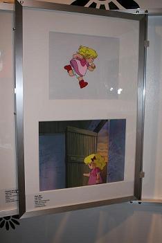 Der "Security-Mensch" wollte uns nicht erlauben zu fotografieren und verwies uns an den Pressebeauftragten Herrn Meier. Diesem erklärten wir, dass ein Teil der ausgestellten Cels mir gehöre und wir bekamen einen "Daumen hoch" von ihm und konnten endlich losknipsen.